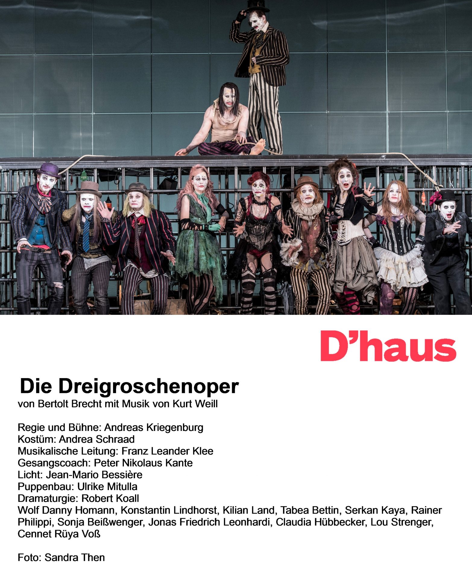Es gibt in den bös-verführerischen, zum-Elend-mitschunkelbaren Gassenhauern von Weill durchaus Aktualisierungs-Potential und zeitlose Bezüge. So aber bleibt es bei einer operettenhaften, letztlich seichten Zurschaustellung. Auf die Frage, warum man heute diese widersprüchliche „Dreigroschenoper“ zeigen soll geben Intendanz, Dramaturgie und Regie nach Kriegenburgs höchst ambitionierten Berlin-Gastspiel „Ein Käfig ging einen Vogel suchen“ im November 2016 mit dieser Produktion eine erschreckend ambitionslose Antwort: „einen vergnüglichen, amüsanten Abend“, der aber an Diskussionsmöglichkeit nicht nachhallt.