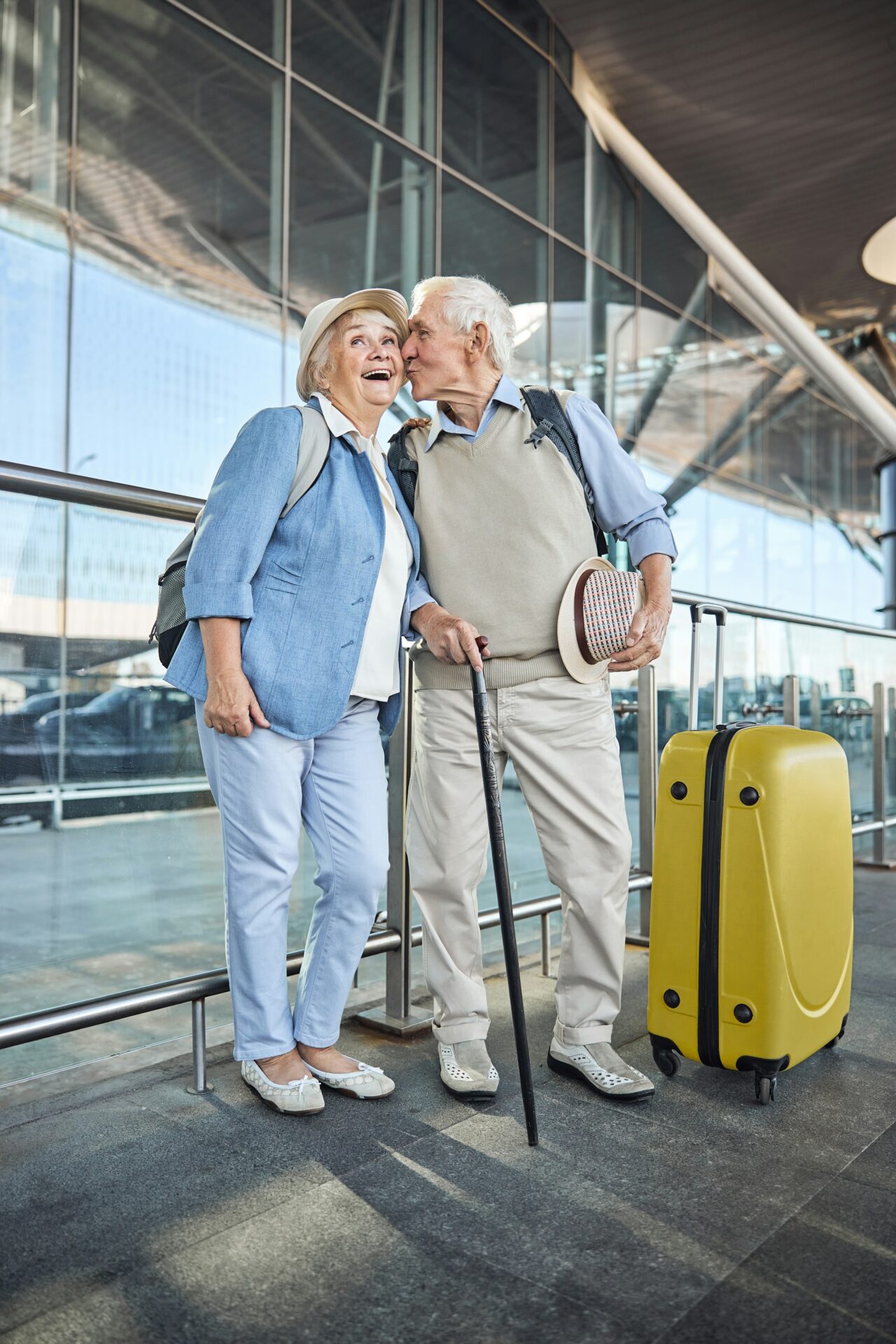 Ältere Reisende denken unbedingt an Snacks, an häufiges Trinken und an regelmäßige Bewegung. Ob im Auto oder im Flugzeug – es empfehlen sich immer kurze Pausen, während derer sich die Beine vertreten werden. So geht selbst eine mehrstündige Anreise nicht zu sehr in die Knochen.