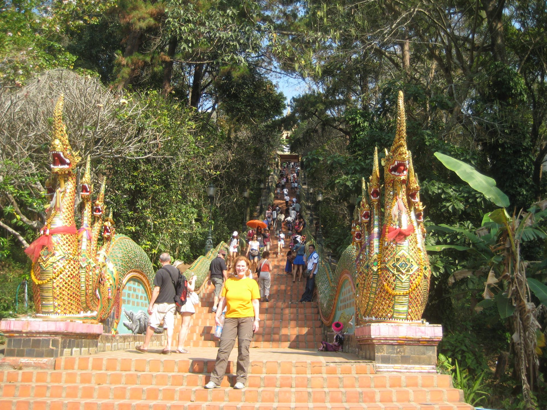 Also packte jeder von uns einen riesigen Rucksack und los ging’s. Wir fuhren im Februar 2013 mit dem Zug von Traunstein nach München. Von dort flogen wir weiter nach Bangkok. Für die ersten zwei Nächte hatten wir in der Nähe des Flughafens ein Hotelzimmer gebucht. Am ersten Tag mieteten wir uns ein Taxi für den ganzen Tag und ließen uns vom Fahrer sämtliche Sehenswürdigkeiten der Stadt zeigen. Dann entschieden wir uns mit dem Zug nach Chiang Mai zu fahren: 13 Stunden dauerte die Reise! Eine wunderschöne Stadt. Wir hätten auch fliegen können, aber wir wollten Land und Leute “hautnah” erleben. Mit dem Schiff fuhren wir auf dem Maekong nach Laos. Nach einigen Tagen ging’s wieder zurück nach Bangkok. Von dort weiter Richtung Süden über Surat Tani nach Phuket. Nach einem kurzen Aufenthalt haben wir uns für ein “Inselhüpfen” entschieden. Mit dem Schiff zur ersten Insel Ko PhiPhi bis zur letzten Ko Lanta. Wir trafen viele Deutsche. Ich würde sagen, wir wurden eher erstaunt angesehen: In dem Alter und mit Rucksack?! Und es stimmte, eigentlich waren alle jünger als wir, vor allem die mit Rucksack.