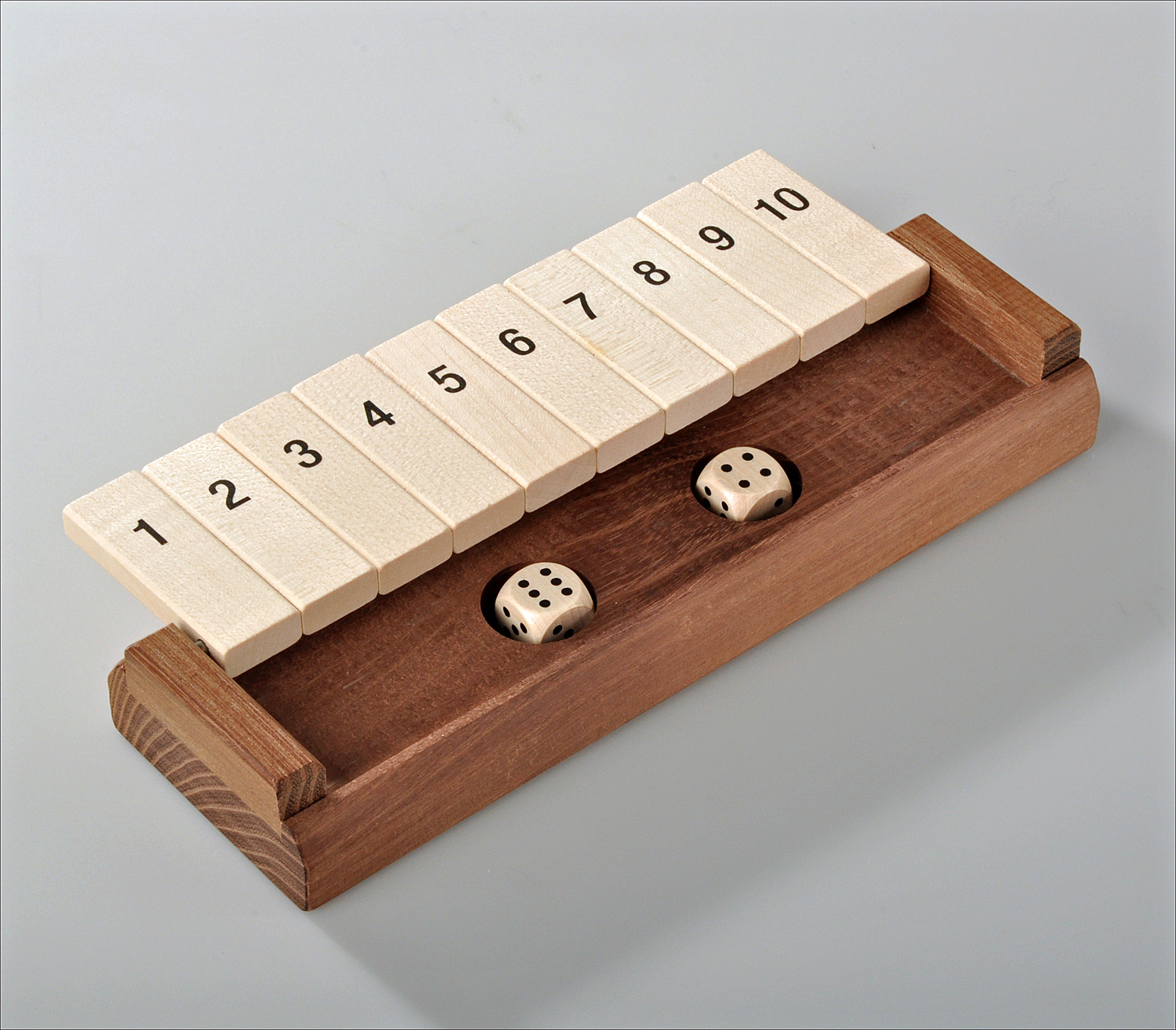 Das Beste ist es, alle Klappen „umzuwürfeln“ – eine Nullrunde sozusagen! Dies wird Ihnen aber höchstens in einem von hundert Versuchen gelingen. Wenn Sie keine Klappe mehr umdrehen können, wird die Summe der stehen gebliebenen Klappen ausgerechnet – natürlich im Kopf – und notiert! Im schlimmsten Fall sind dies 55 Punkte.