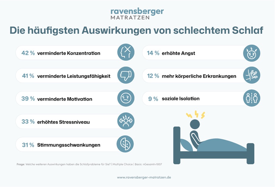 Besonders auffällig: Frauen ab 50 sind deutlich häufiger von Schlafstörungen betroffen. Hormonelle Umstellungen, Mehrfachbelastungen und mentale Erschöpfung können hier eine Rolle spielen. Die Auswirkungen sind gravierend: Neben Konzentrationsschwäche werden auch Stimmungsschwankungen, verminderte Leistungsfähigkeit und soziale Rückzüge genannt.