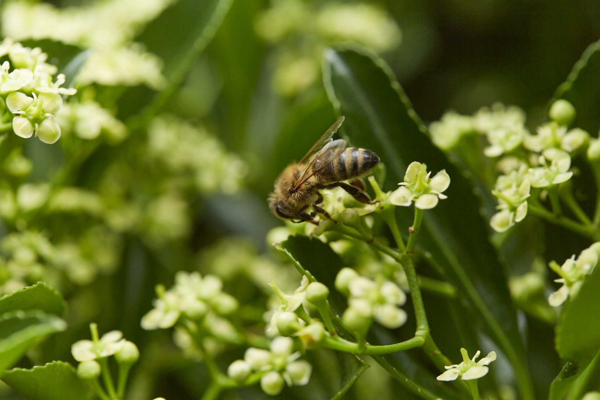 Und die Honigbiene selbst wiederum sichert das Überleben von allerlei Blütenpflanzen. Sie sind auf die Bestäubung durch die Arbeiter-Bienen angewiesen. Eine einzige von ihnen besucht bis zu 400 Blüten täglich, legt dabei bis zu 85 Kilometer zurück und kann so zusammen mit ihren Kolleginnen an guten Tagen bis zu 8 kg Nektar in den Bienenstock bringen.