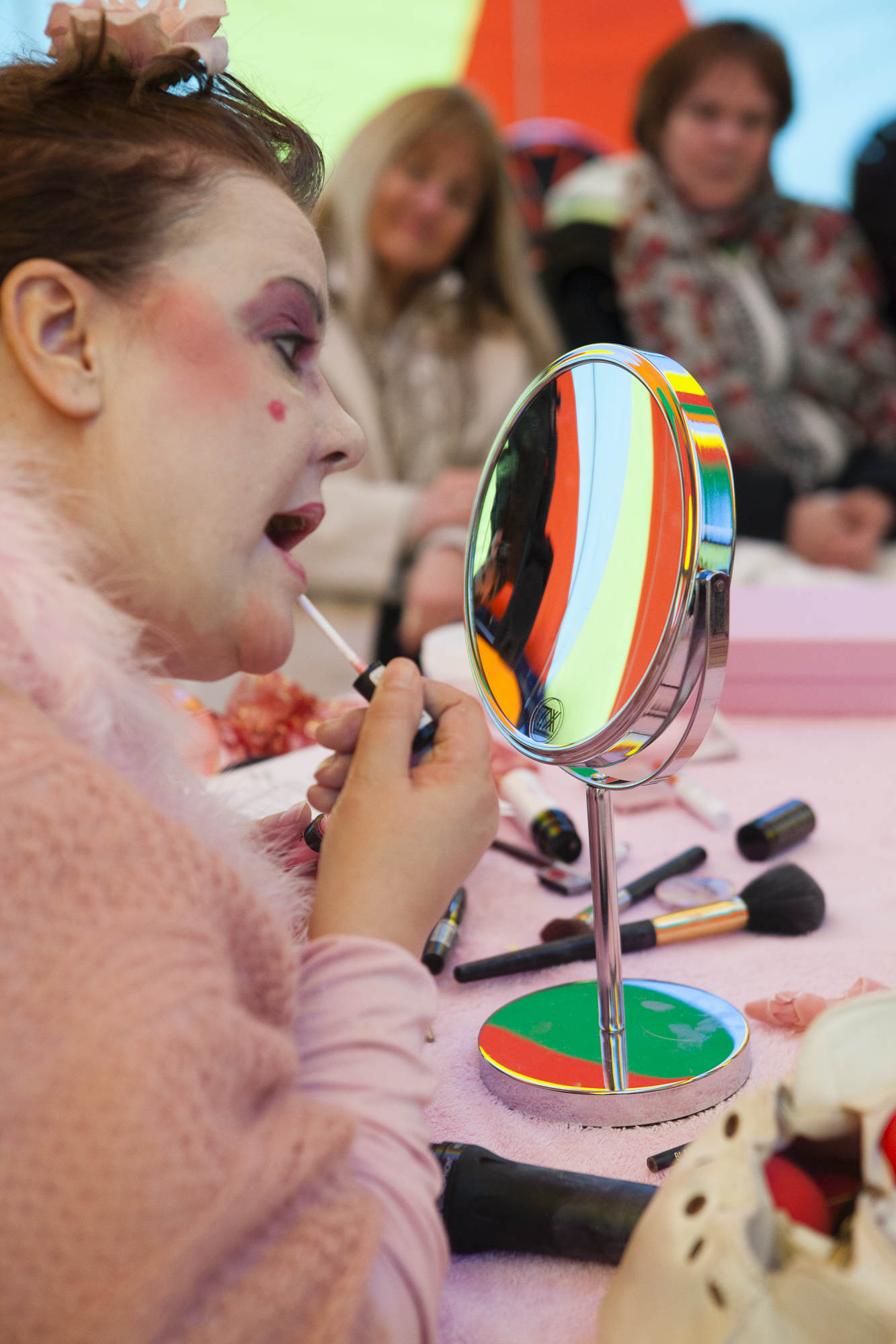 Dabei konnte sie anfangs mit der Rolle der Clownin überhaupt nichts anfangen. Seit ihrer Jugend macht Susanne Bötel Amateurtheater. Es hat sie immer geärgert von den Regisseuren für die komischen Rollen besetzt zu werden. Bis eine Kollegin zu ihr sagte, „dann kannst du ja gleich Clown werden“. Ihre Neugier siegte und nach einem Schnupperkurs war sie fasziniert. Davon, dass man sich viel mit sich selbst beschäftigt, weil es um die eigenen Grenzen und Konventionen geht. „Man kann nur ein guter Clown sein, wenn man die Konvention einfach ablegt. Konventionen sind wichtig, aber manche sind auch überflüssig. Es geht darum den Mut zu haben auch mal spielerisch darüber hinwegzugehen.“ Mit Rosalore macht sie das jeden Tag. Sie umarmt fremde Leute, legt ihnen den Kopf in den Schoß, tanzt und singt mit ihnen.