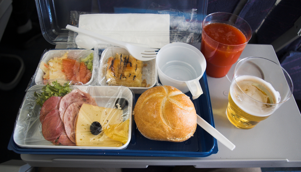 Bei dem gesunden Tomatensaft sollte man ruhig auf jeder Flugreise zulangen. Quelle: Shutterstock.com