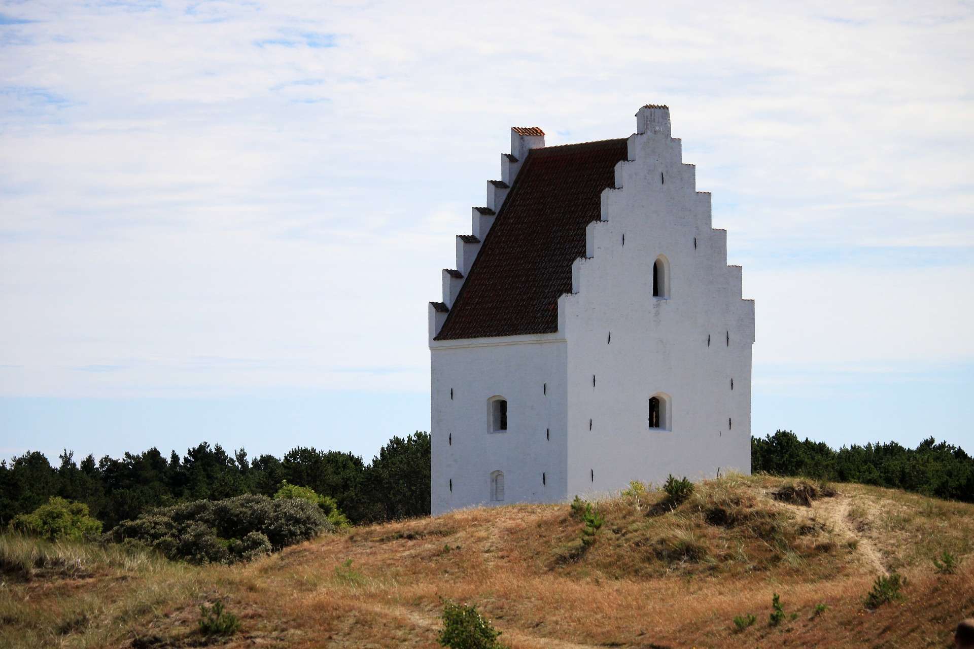 Versandete Kirche: Etwa vier Kilometer südöstlich der Stadtmitte von Skagen liegt in Sichtweite der Küste eine versandete Kirche (Den Tilsandede Kirke). Das Gotteshaus fiel Ende des 18. Jahrhunderts der größten Wanderdüne Dänemarks, Råbjerg Mile, zum Opfer. Heute erinnert nur noch der Turm an die ehemalige Pfarrkirche Skagens. Sie wurde aufgegeben, nachdem sich die Gläubigen zu jedem Gottesdienst durchschaufeln mussten.